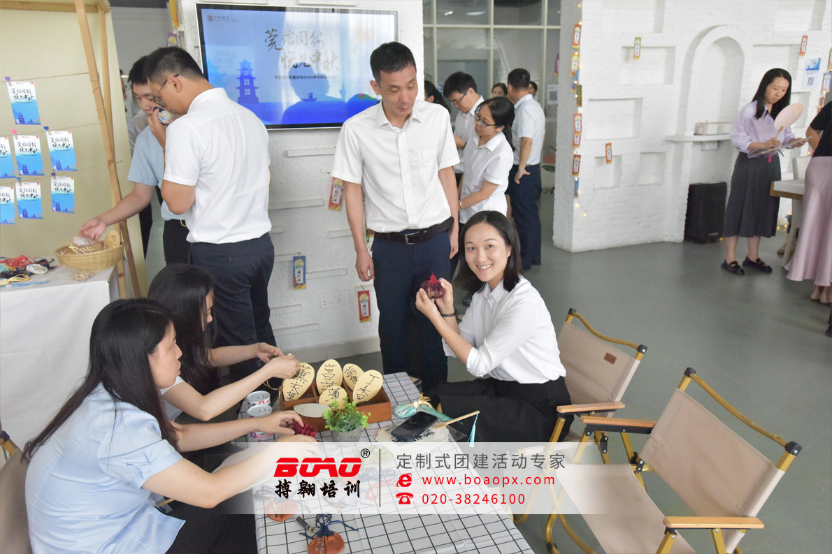 對東莞中信分行而言,這場中秋游園團(tuán)建的意義不止于節(jié)日歡慶。猜燈謎考驗(yàn)思維與協(xié)作,花燈制作鍛煉動(dòng)手能力與耐心,漆扇手作則喚醒審美與創(chuàng)造力,多元的體驗(yàn)讓員工們暫時(shí)卸下工作壓力,在輕松的互動(dòng)中增進(jìn)彼此了解,打破部門間的溝通壁壘;而傳統(tǒng)中秋元素的融入,既讓員工沉浸式感受中華傳統(tǒng)文化的魅力,也讓團(tuán)隊(duì)在共同的文化體驗(yàn)中形成更強(qiáng)的歸屬感。對搏翱團(tuán)建而言,定制化的中秋游園方案既貼合節(jié)日氛圍與企業(yè)員工關(guān)懷需求,也踐行了“以多元團(tuán)建形式賦能團(tuán)隊(duì)情感聯(lián)結(jié)”的服務(wù)理念。