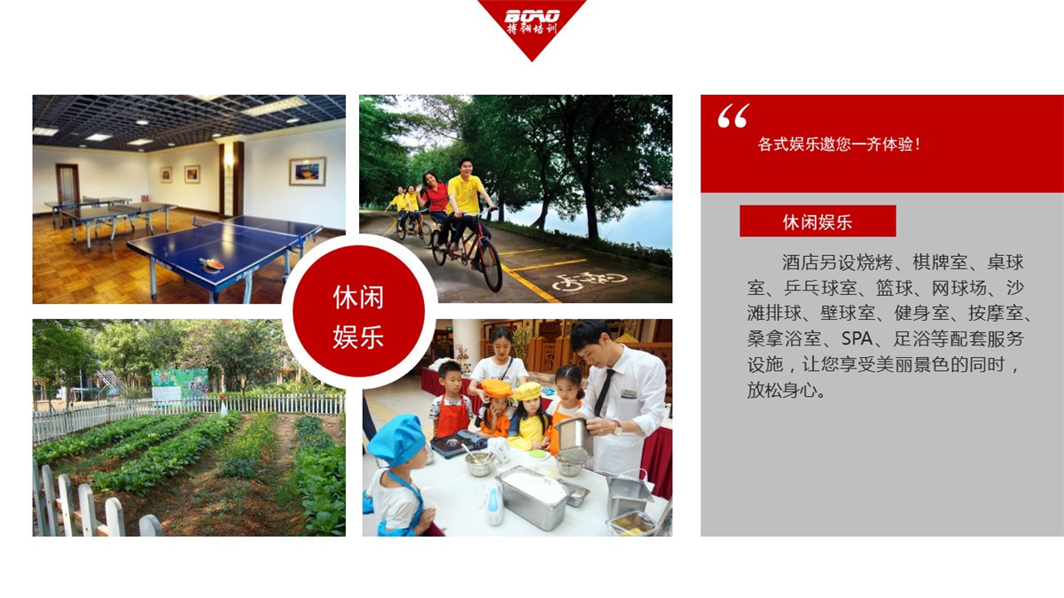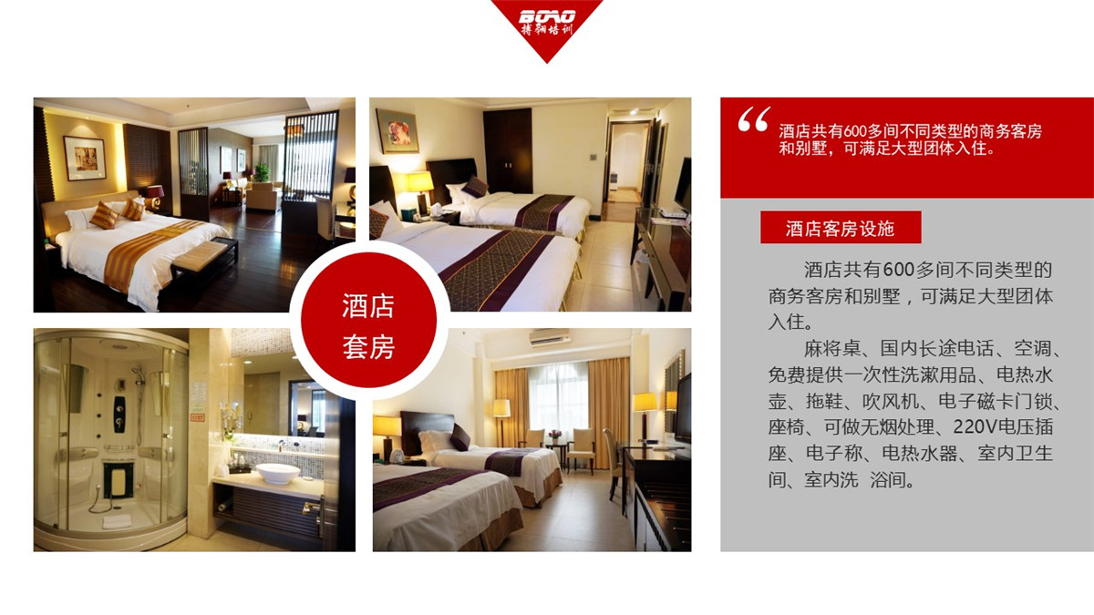 酒店共有600多間不同類型的商務(wù)客房和別墅,可滿足大型團(tuán)體入住。