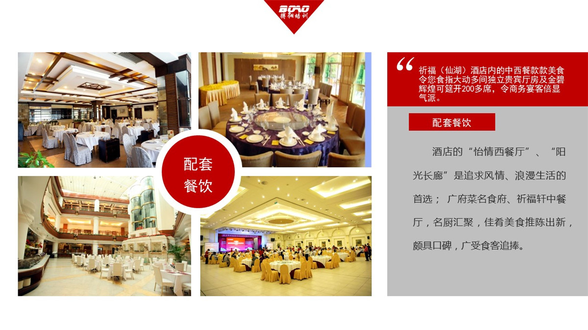 祈福(仙湖)酒店內(nèi)的中西餐款款美食令您食指大動(dòng)多間獨(dú)立貴賓廳房及金碧輝煌可筵開200多席,令商務(wù)宴客倍顯氣派。